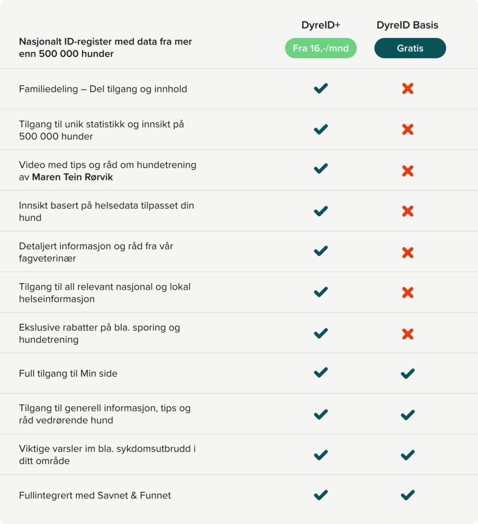 Hva er forskjellen på DyreID basis og DyreID+ abonnement?