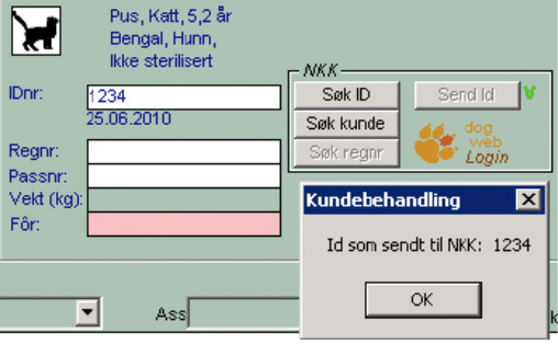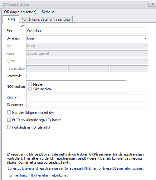Etter at du har fylt inn nødvendig informasjon om nytt dyr, klikk «Send ID» eller «OK» lagre og sende
